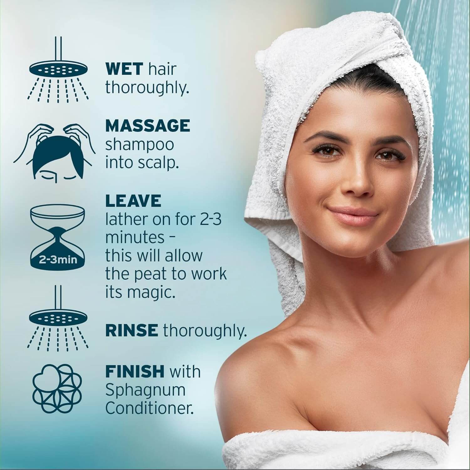 • Follow with Sphagnum Botanicals Hair Therapy Conditioner if needed.